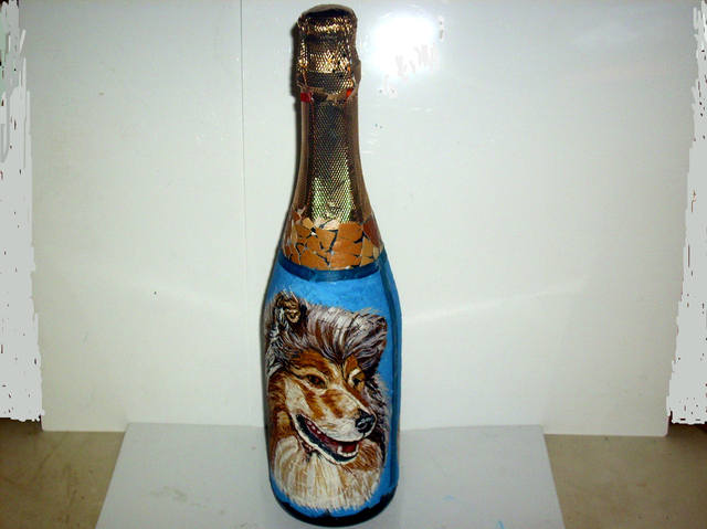 Бутылка шампанского(полная)-роспись на ломаной яичной скорлупе